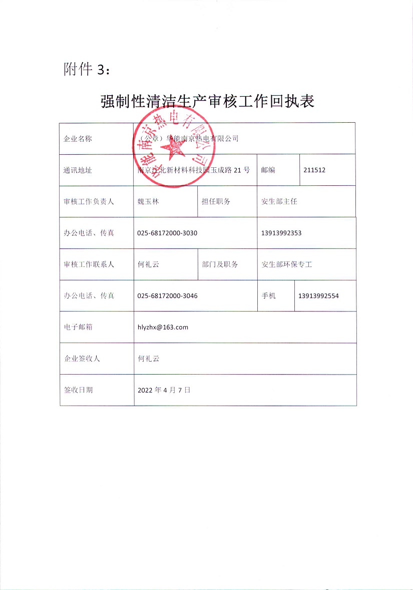 華能南京熱電有限公司清潔生產審核信息公示